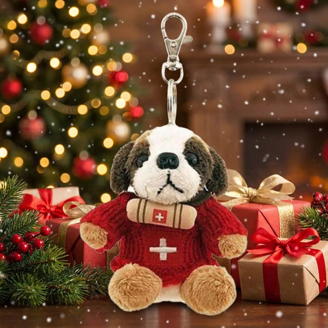 Mit diesem Schlüsselanhänger sind Sie stets treu begleitet. Barry aus Plüsch mit rotem Pulli.